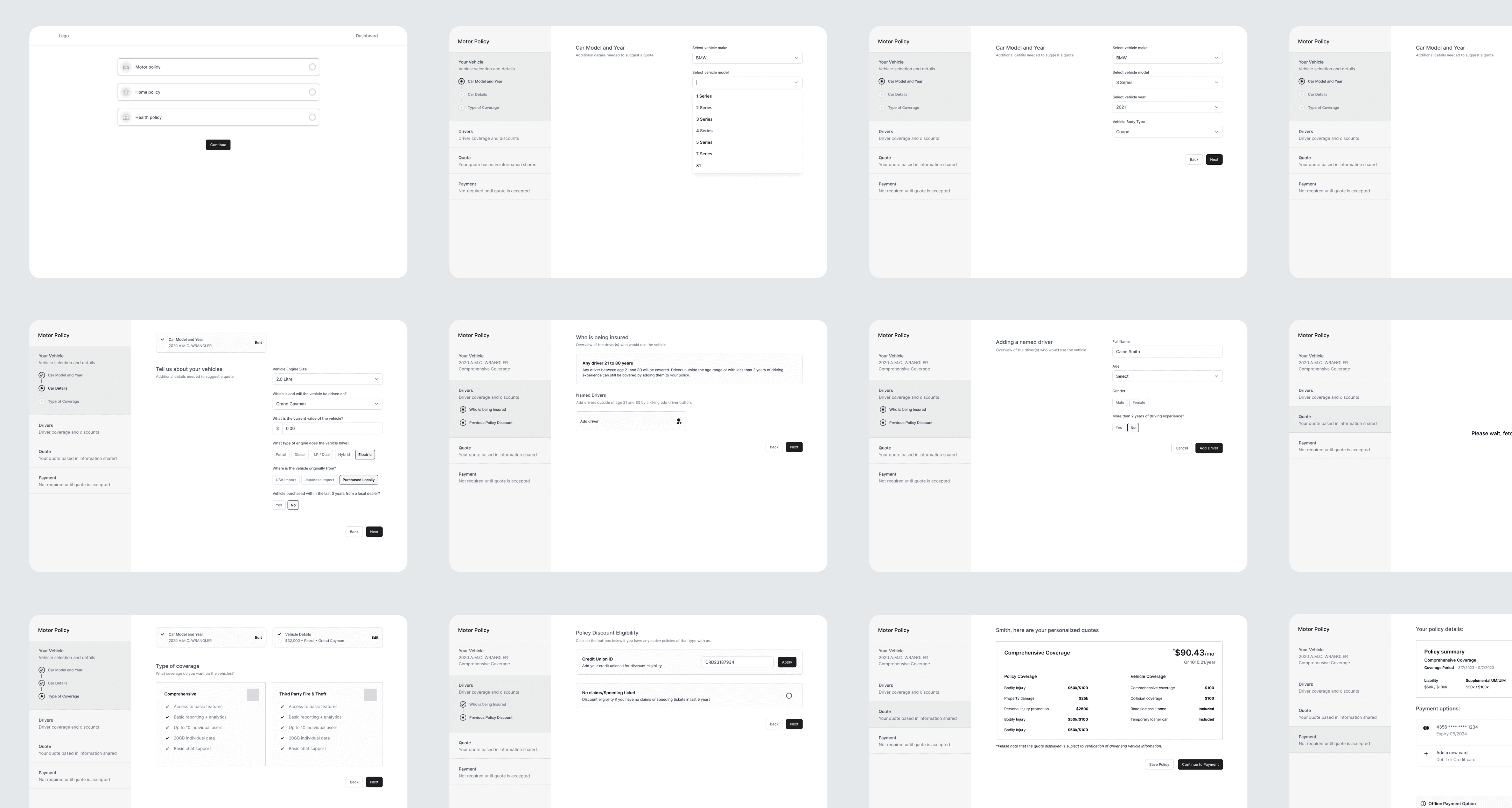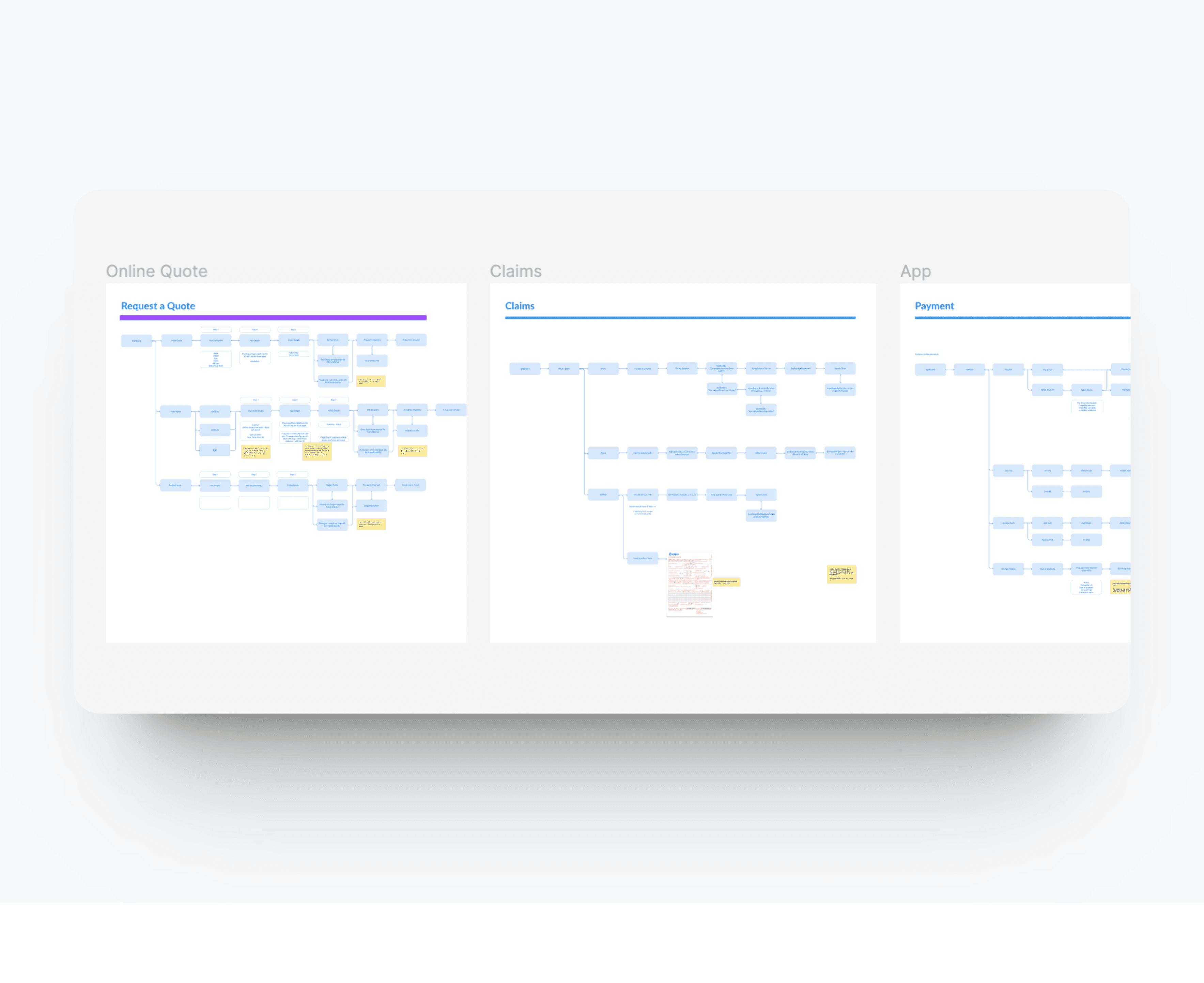 To understand the functioning of different user scenarios such as new users, existing users, and saved quotes, user flows were created. This approach aimed to visualize and analyze the complete process, ensuring a holistic understanding of how each flow operates.