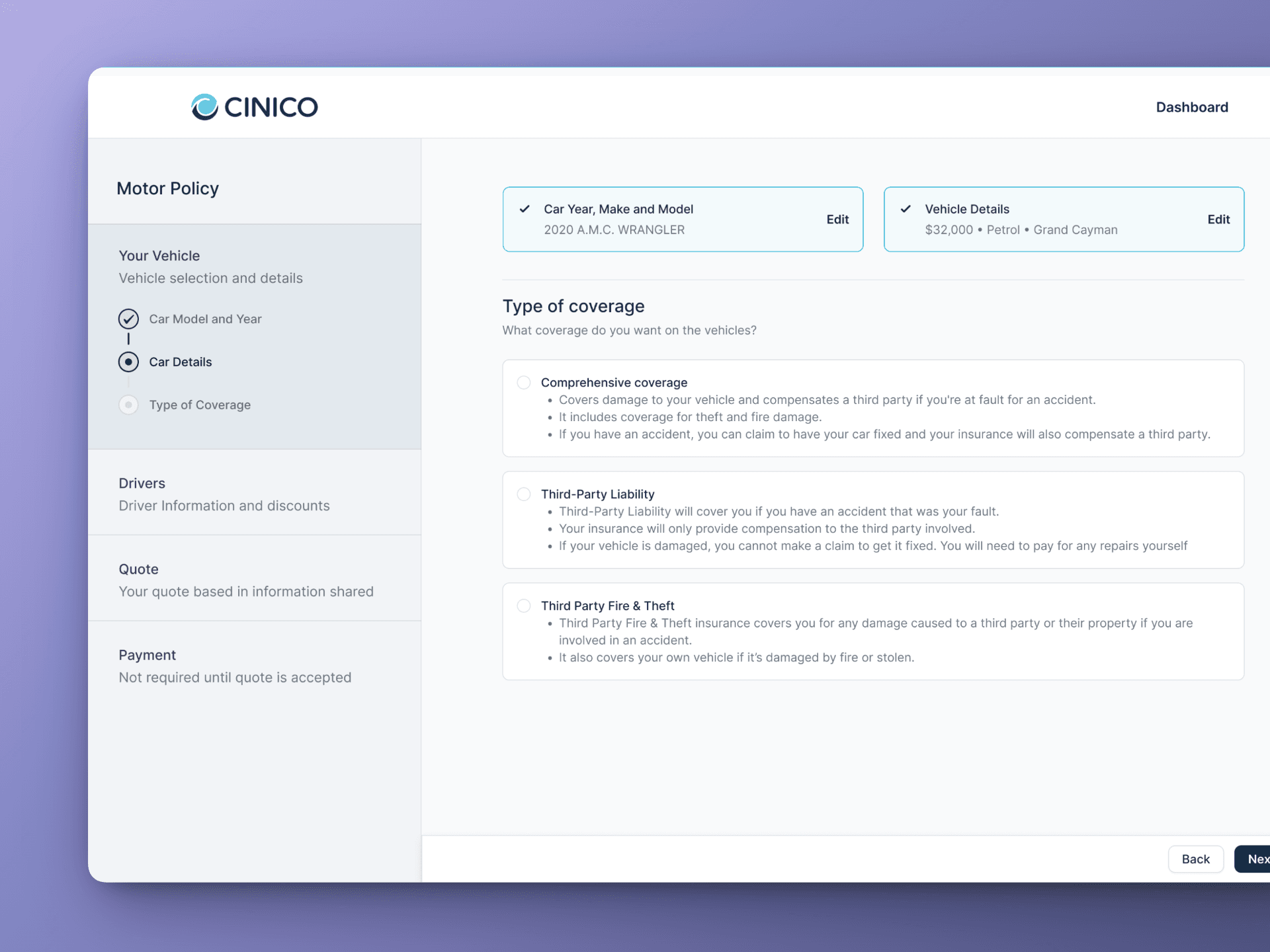 CINICO is expanding its insurance offerings to Motor and Home as well as expanding its area of operations throughout the Caribbean. As they are expanding its offerings, they want to introduce online policy quote to make its offerings more accessible to their customer base.