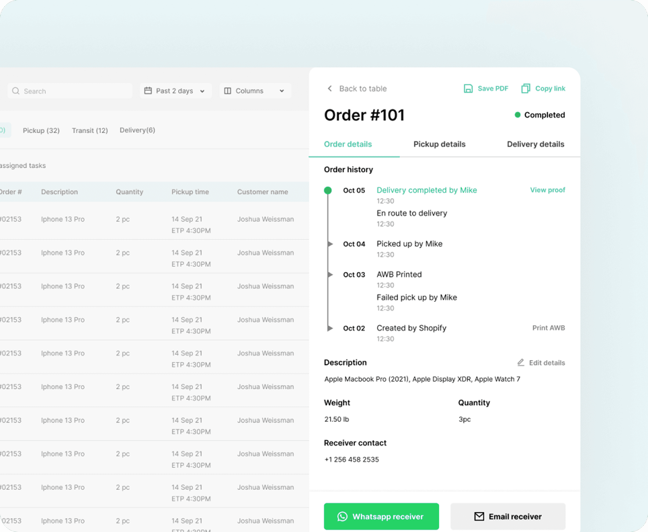 The driver companion app is designed to ease the delivery experience for the driver through route optimization and seamless POD (proof of delivery) being efficient and fast. Drivers can focus more on the road and spend less time planning the deliveries manually while minimizing the chances of errors