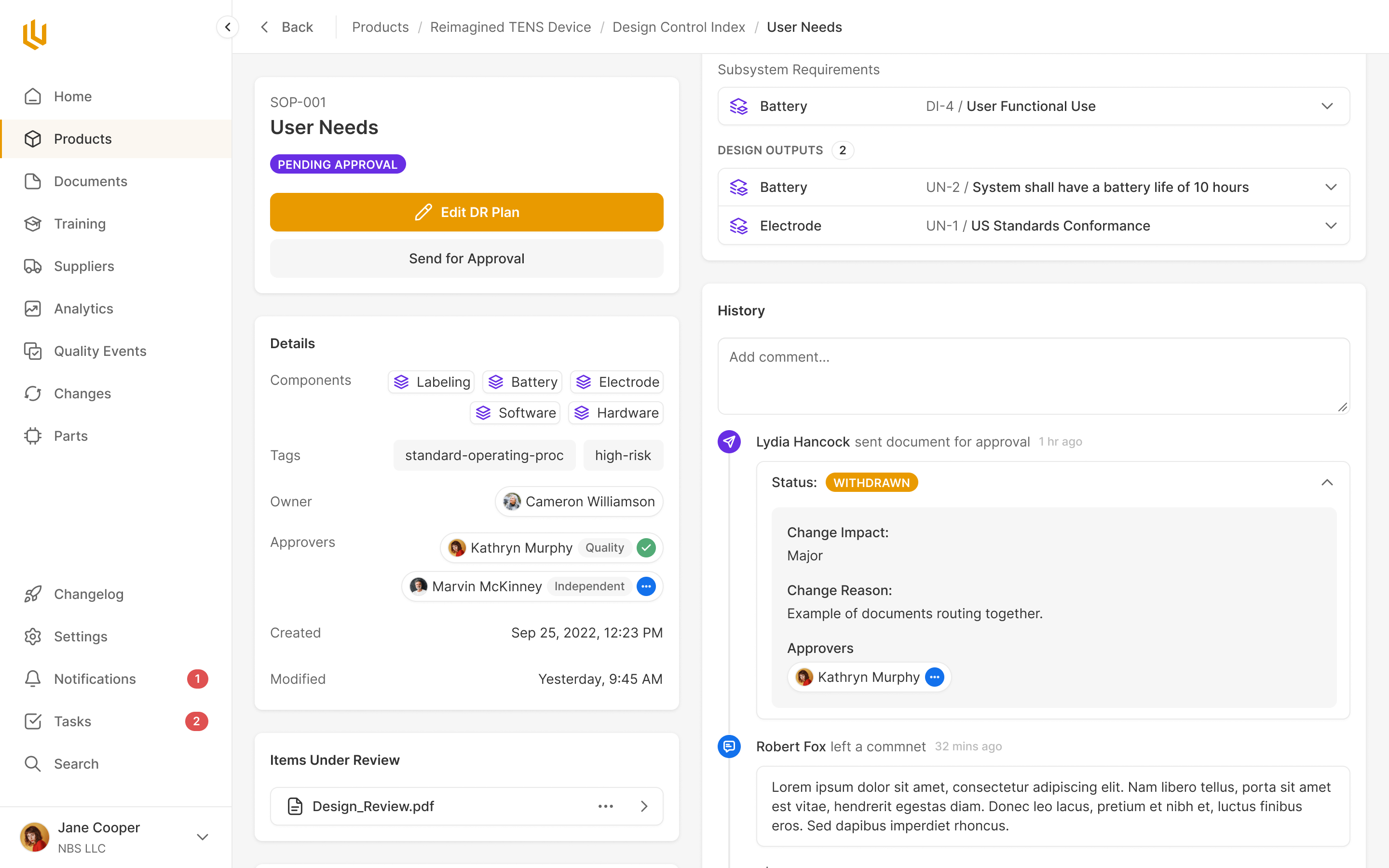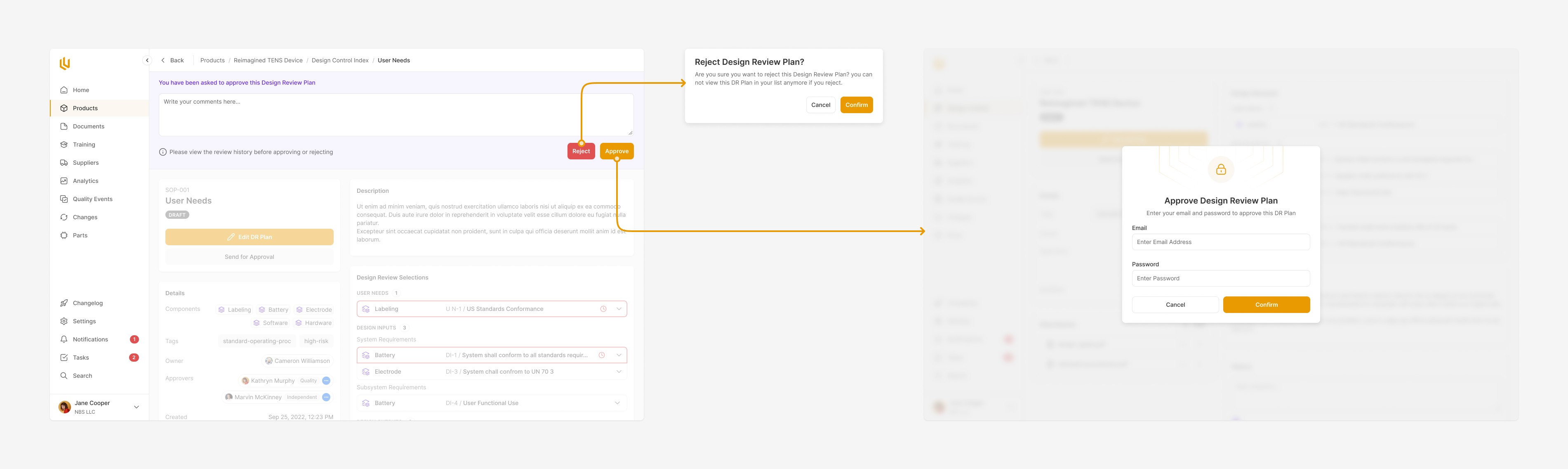 Company and product documentation needs approval under FDA regulations, the same as design specifications. Ultralight handles document storage and approval using the same process users are already familiar with.